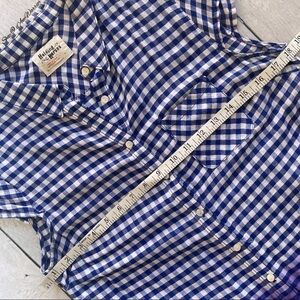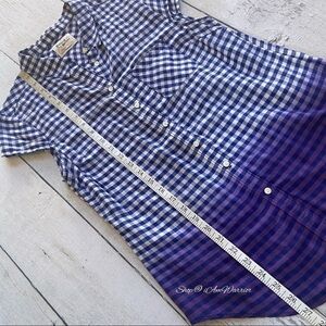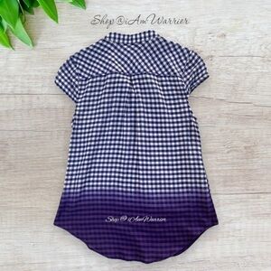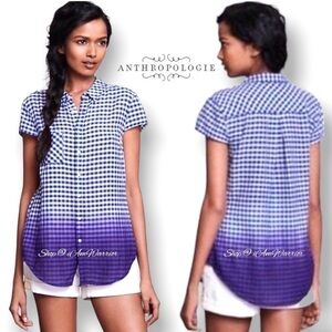 Anthropologie Holding Horses blue & purple ombrรฉ plaid gingham short sleeve button down top with fold down collar & rounded hem. Super cute with cut offs or denim. Retailed at $78. GUC, see photos for measurements.