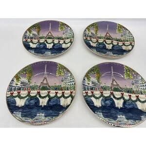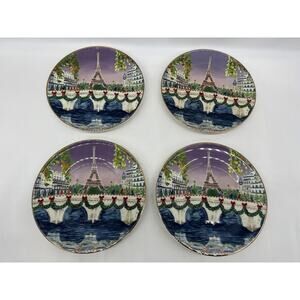 Anthropologie Holiday In The City Stoneware Plate Set of 4 Dessert Plates Paris