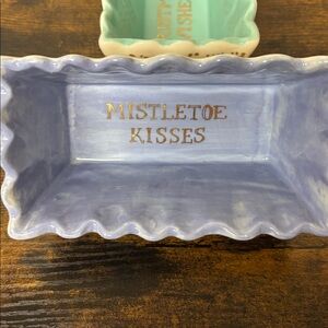 Mistletoe Misses and Christmas Wishes mini loaf pans. Each measures approximately co 5 1/2” by 2 1/2”. No chips or cracks.