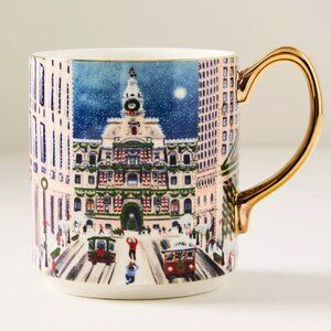 On the menu: merry, festive, and joyful. From the streets of Philadelphia to snowy New York City to the glittering Paris lights, enjoy illustrations of your favorite cities dressed up for the holidays with this only-at-Anthro dessert plate.