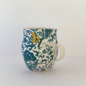 Anthropologie Homegrown Letter b Monogram Mug Green Floral Yellow Initial B NEW