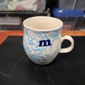 Anthropologie Homegrown Monogram M, Aqua Floral 16 Oz Coffee Tea Mug