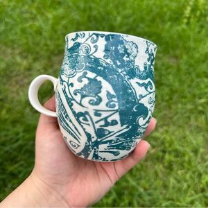 tags/ anthro , anthropologie , homegrown , home grown mug , blue , white , coastal , floral , cottagecore , cottage , prairie , boho , bohemian , girly , western