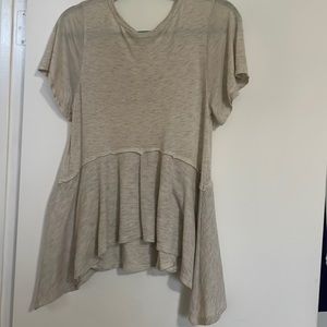 Anthropologie Hummingbird Kerchief Tee is made of rayon and polyester. Thermal material layers over rounded split bottom. It measures 17” from underarm to underarm and 25” from shoulder to hem. From shoulder to side is 30”. Size Medium. VGUC