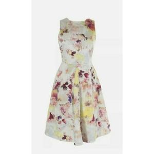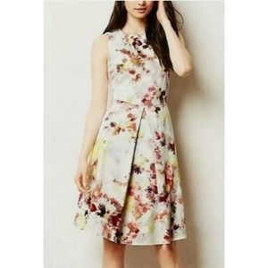 Anthropologie Hunter Bell Kukka Tea Dress Multi Floral Pleated Stretch Sz 0 (B2. Condition is "Pre-owned". Shipped with USPS First Class.