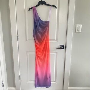 Anthropologie Hutch Aurora One-Shoulder Sheer Cover-Up Midi Dress