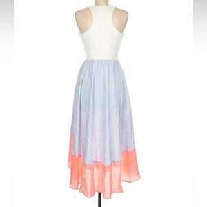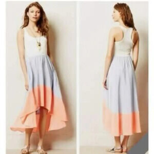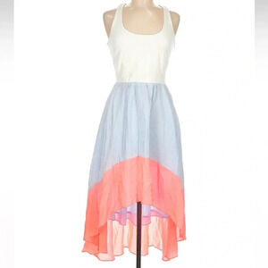 Anthropologie Hutch Blue Coral Color Block High Low Midi Dress Size Med Petite