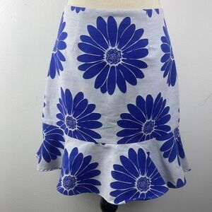 Anthropologie Hutch Blue white Fitted Floral skirt with ruffle at bottom Size 0