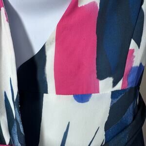 • Flaws: Areas of stains on wrap neckline and back of skirt. See photos.