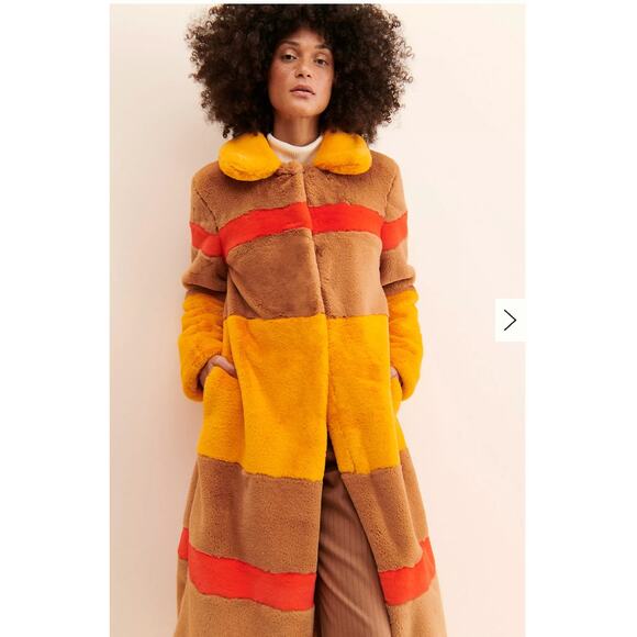 Anthropologie Hutch Colorblock Stripe Faux Fur Coat Large