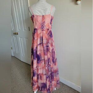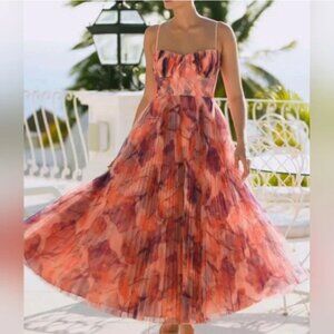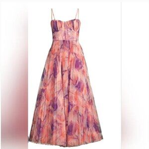 Anthropologie Hutch Costella Strapless Pleated Floral Tulle Midi Dress size 14