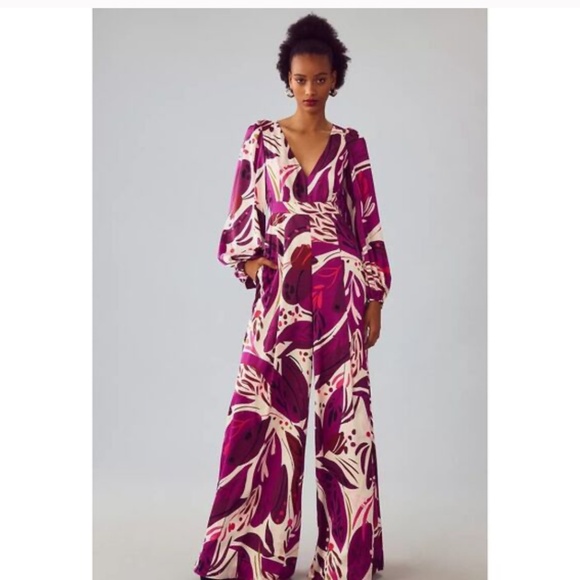 Anthropologie Hutch Deep V Wide Leg Jumpsuit