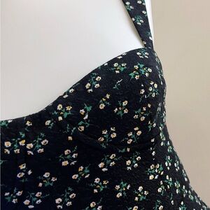 Anthropologie Hutch Ditzy Corset Black Floral Mini Dress Twee Indie Boho