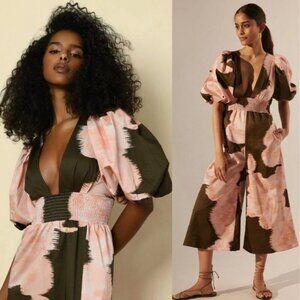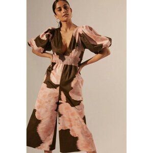 Anthropologie Hutch Isa Printed Smocked 3X Puff Sleeve Jumpsuit