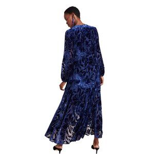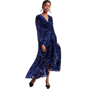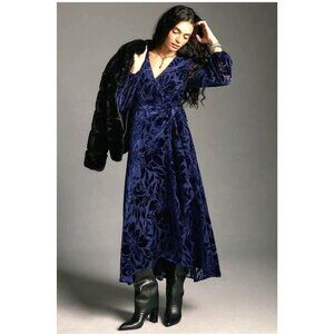 Anthropologie Hutch Long Sleeve Velvet Wrap Maxi Dress Size M NWT Burnout Navy