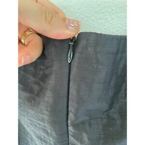 Gorgeous well-made structured dress. High ratings online. Off the shoulders with thick elastic at the shoulders. Zip back, covered buttons. Lined. Hook and zipper back closure.