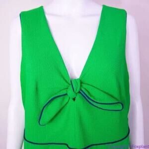 Anthropologie Hutch Navy Piping Green Bowtie Dress, 2X