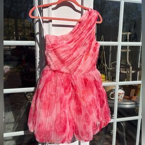 Gorgeous anthro hutch one shoulder tulle floral romper. Never been worn, with tags attached. Side zip. Beautiful pink color scheme. Frothy and fun!