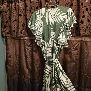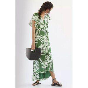 Anthropologie Hutch Palms Wrap Maxi Dress, Green And Cream, US Size L flowy