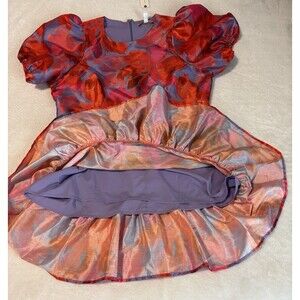 Anthropologie Hutch Puff-Sleeve Ruffled Shift Mini Dress Sz XL Pink Pattern