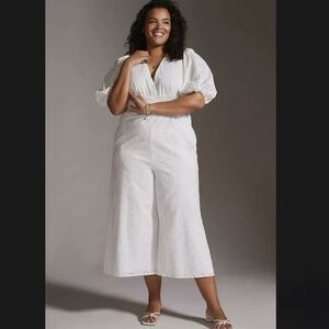 Anthropologie Hutch Smocked Waist Eyelet Jumpsuit XL Cottagecore Feminine NWT