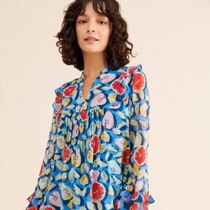 Anthropologie Hutch Sz XL Orla Fruit Print Mini Dress Blue Red GREAT!