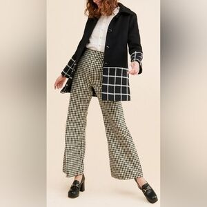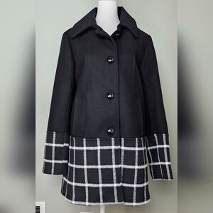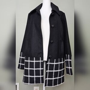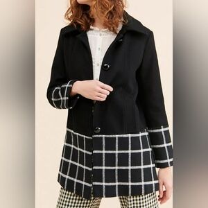 Anthropologie Hutch Windowpane Coat Wool Blend SMALL BLACK with White