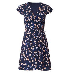 Anthropologie Hutch Wrap Around Clara Navy Blue Leopard Dress - Medium / M