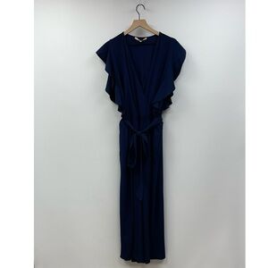 Anthropologie Hutch Zia Surplice V-Neck Ruffle Wide Leg Crop Jumpsuit Navy 1X