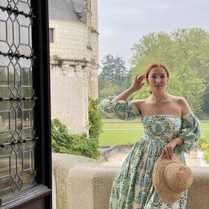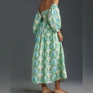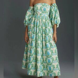 Anthropologie Hydrangea Dress Let Me Be XSP off shoulder long sleeve maxi floral