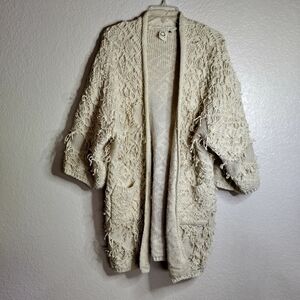 Anthropologie IONE textured Fringe Diamond Knit Open Front Cardigan Akemi + Kin