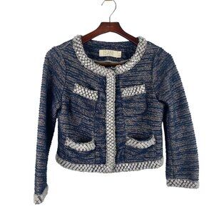 ISANI Blue & White Tweed Cropped Jacket With Silver Accents Size S