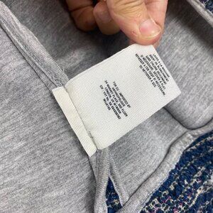 This tweed cropped jacket offers a polished appearance with its textured fabric and silver-toned accents. Perfect for layering in professional settings. Approximate Measurements are in the photos.