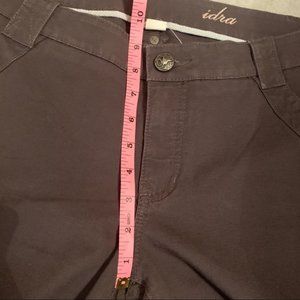 Not as high-waisted as they appear on the Anthropologie model in the first photo