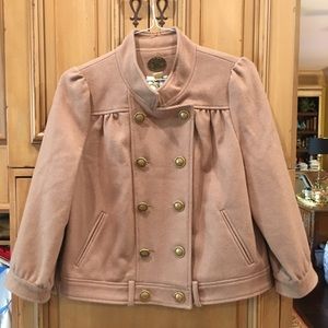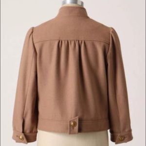 NEW WITHOUT TAGS!!! Barely there pleats, smart tailoring and tidy rows of bottoms steer this timeless camel brown wool jacket in the right direction! This is a military style bomber coat with double breasted details and pockets. Blend of wool and viscose to stay warm. Cotton lined! Purchased from Anthropologie for $188. Size 12 or large.