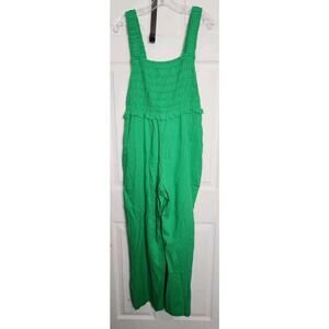 Anthropologie If By Sea Size L Jumpsuit Wide Leg Coastal Kelly Green Smocked NWT