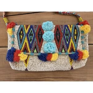 Anthropologie Imayin Handmade Seed Beads Beaded Convertible Crossbody Bag