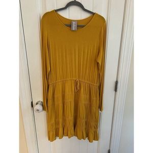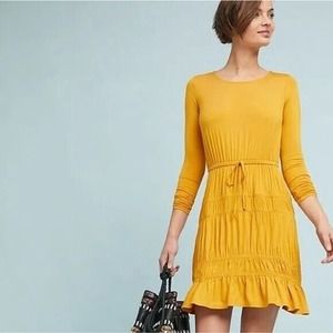 Anthropologie Ingrid Tiered-Ruffle Dress by Dolan Yellow Gold Knit Size XL NWOT