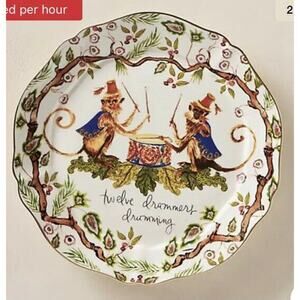Anthropologie Inslee Fariss Christmas Plates Set Of 3 Drummers Drumming New