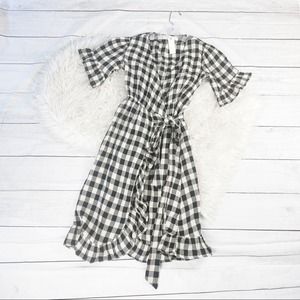 Anthropologie Isabella Sinclair Gingham Flutter Wrap Ruffle Hem Dress Size Small