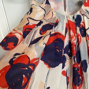 Anthropologie | Isabella Sinclair Red and Navy Floral Silk Dress