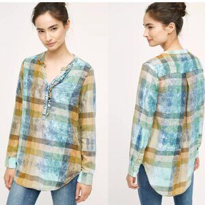 Anthropologie Isabella Sinclair Ruffled Plaid Henley size M