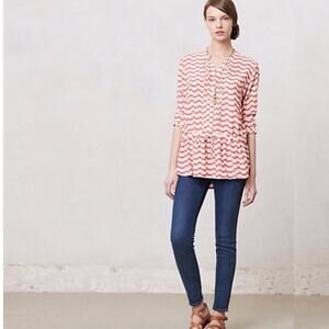 Anthropologie Isabella Sinclair Top Tunic Swizzle Stripe Boho Red Cream Size S