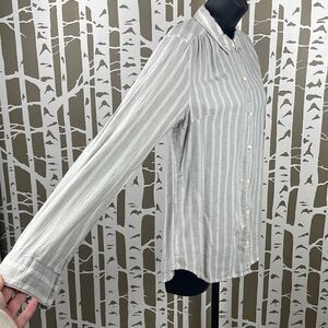 Anthropologie Isabella Sinclair Ivory & Grey Striped Button Down Shirt w Lace Pa
