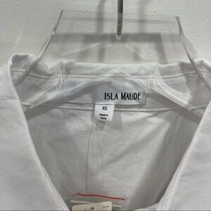 Anthropologie Isla Maude Alixandra Open Shoulder Poplin Tunic White Embroidered