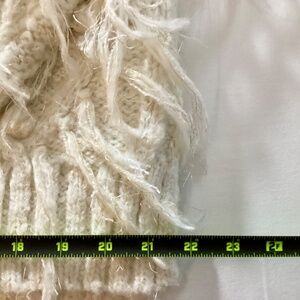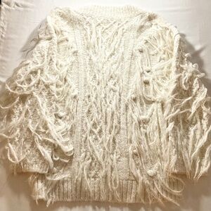 Anthropologie Ivory Fringe V-Neck Sweater Small Textured Pullover