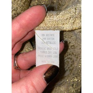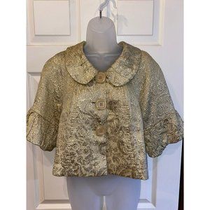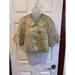 Anthropologie Ivy Jane Womens XS Metallic Gold Blazer Peter Pan Collar Ruffle Si