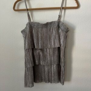 Anthropologie Ivy Silver Metallic Shimmery Tiered Tank XS