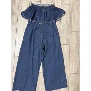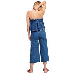 Anthropologie JOA Los Angeles Denim Strapless Jumpsuit With Frayed Hemline Med