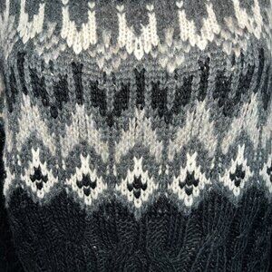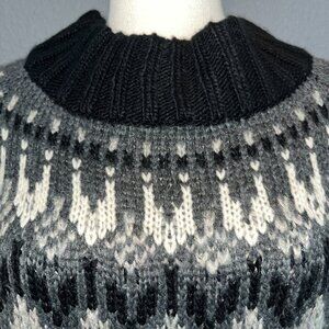 Anthropologie JOHN + JENN WES FAIR ISLE Black Gray & Cream Off-Shoulder Sweater